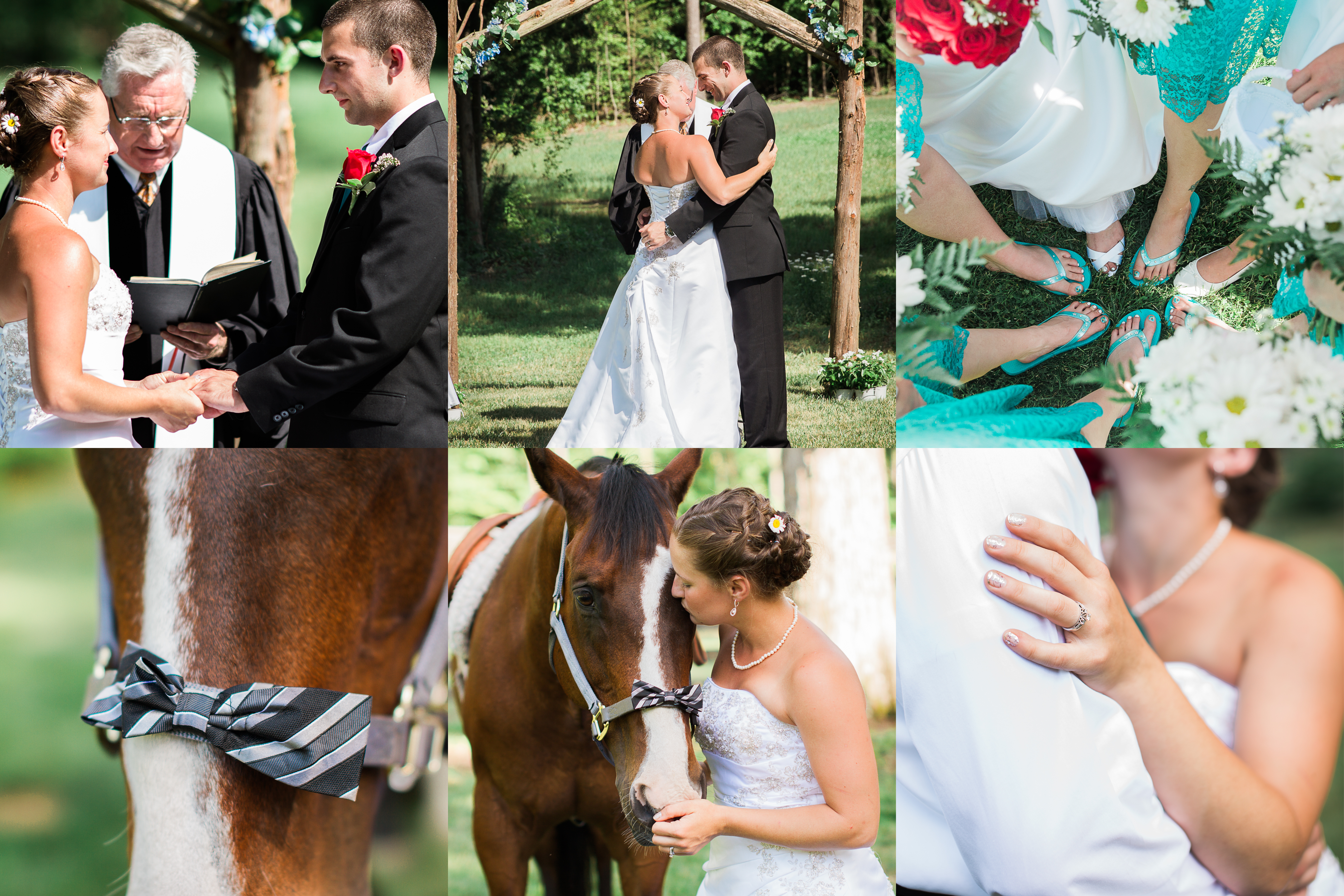 The ceremony was beautiful (and HOT!) and Kristen, of course, had to have a few photos with her horses. The horses had bowties. BOW TIES. HORSE BOW TIES. Ahhhhh.